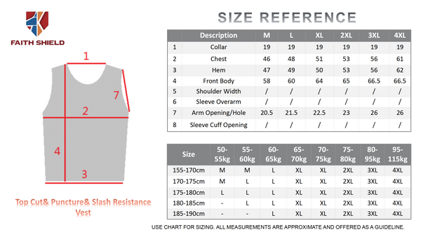 The key function of FAITHSHIELD Cut& Puncture& Slash Resistance Vest is to protect key arteries and blood vessels from cuts and lacerations. The potential consequences of such injury could include rapid blood loss, subsequent shock and even loss of life.